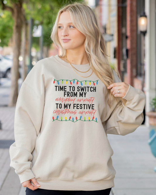 time to switch from my everyday anxiety to my festive christmas anxiety | graphic sweatshirt