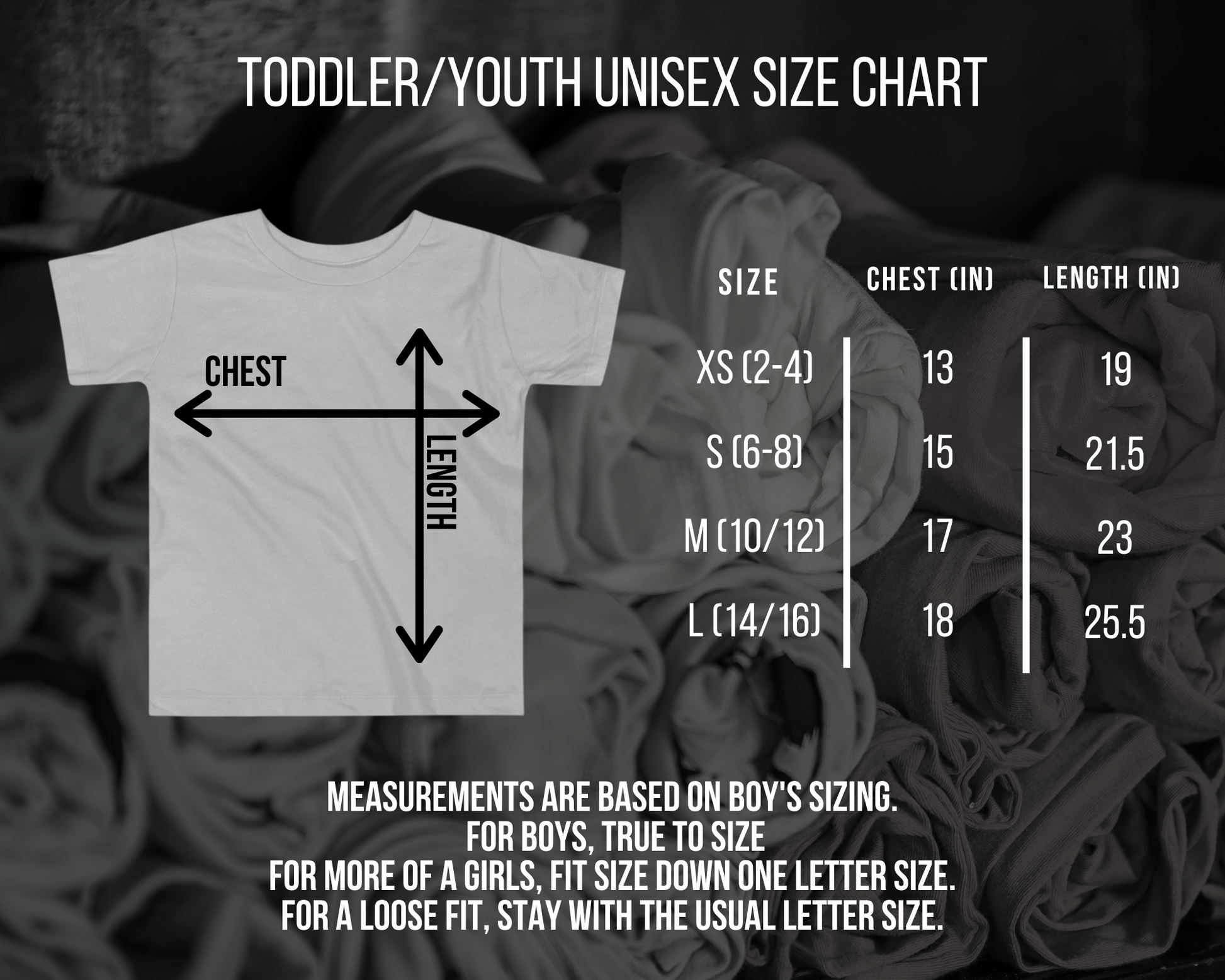 Ex: if they wear a medium in girls clothing, order a large in unisex.