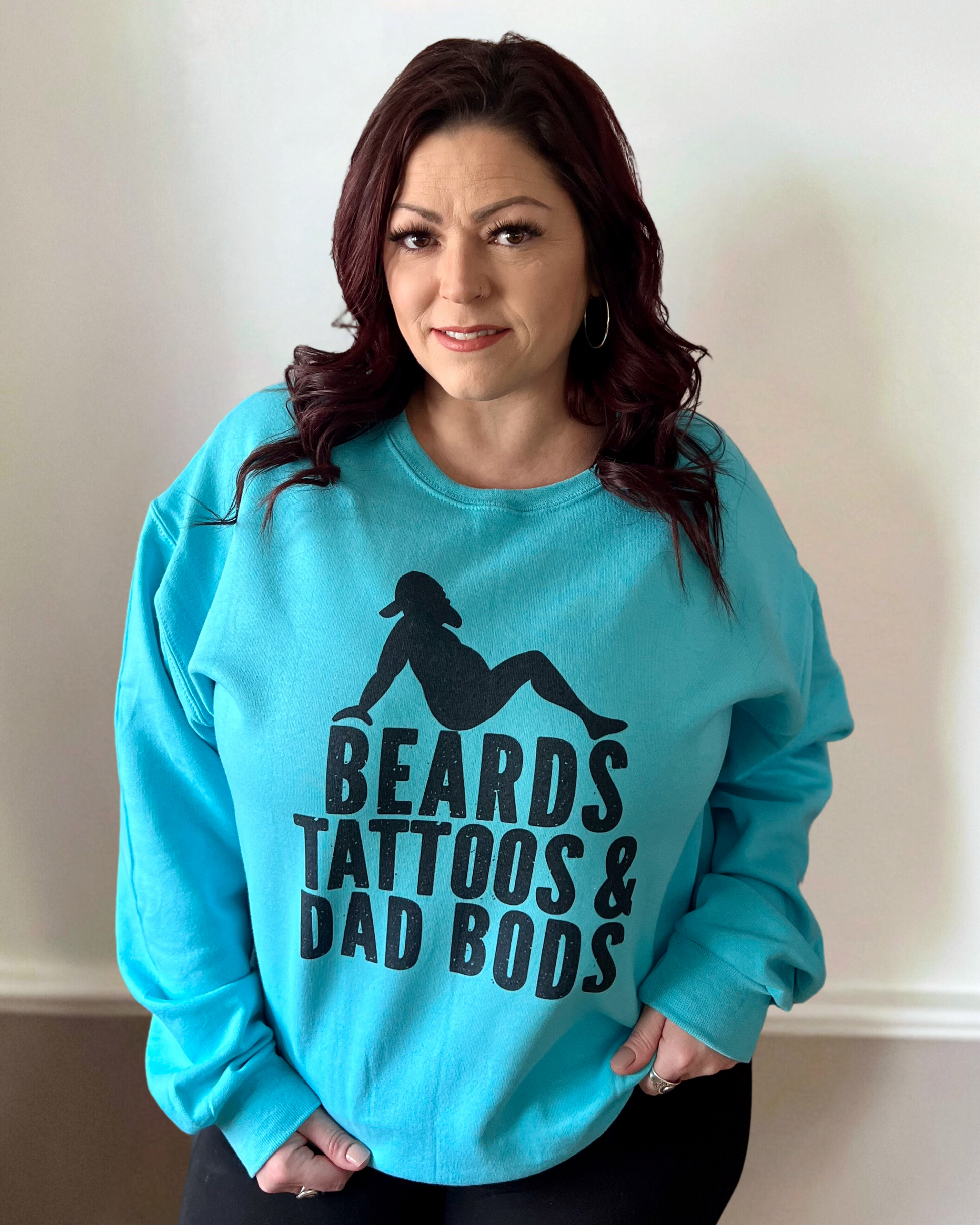Designed for the woman who appreciates the rugged charm of beards, the edginess of tattoos, and the undeniable allure of dad bods. This isn't just a garment; it's a playful ode to the irresistible qualities we can't help but love.