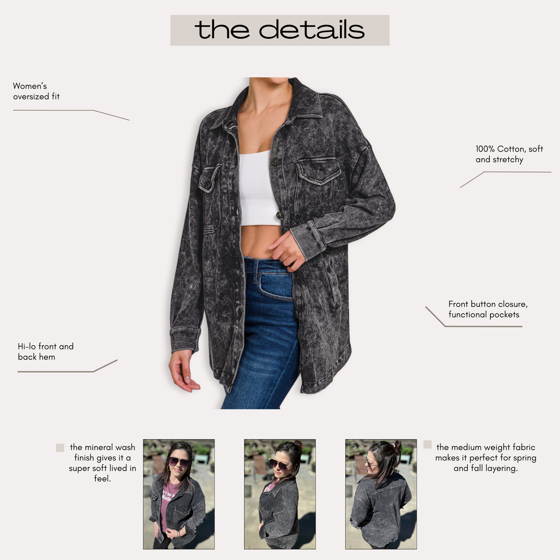charcoal mineral wash | oversized women's shacket