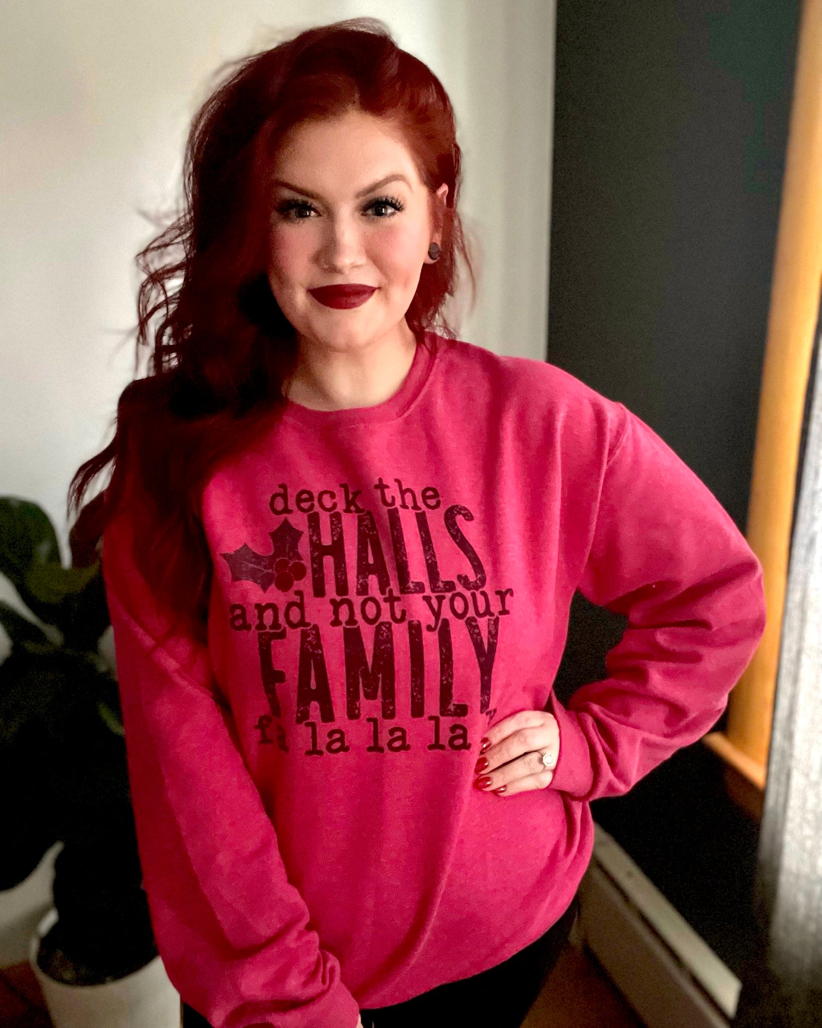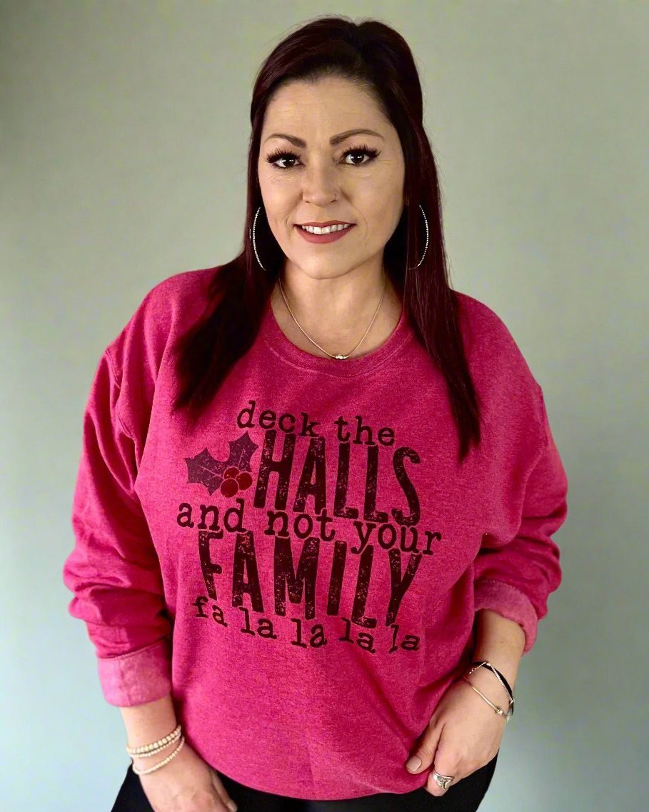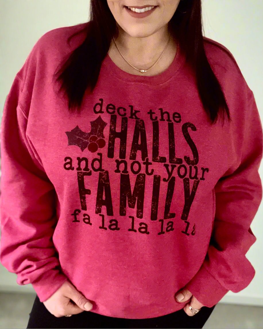 deck the halls and not your family fa la la la la | crewneck sweatshirt
