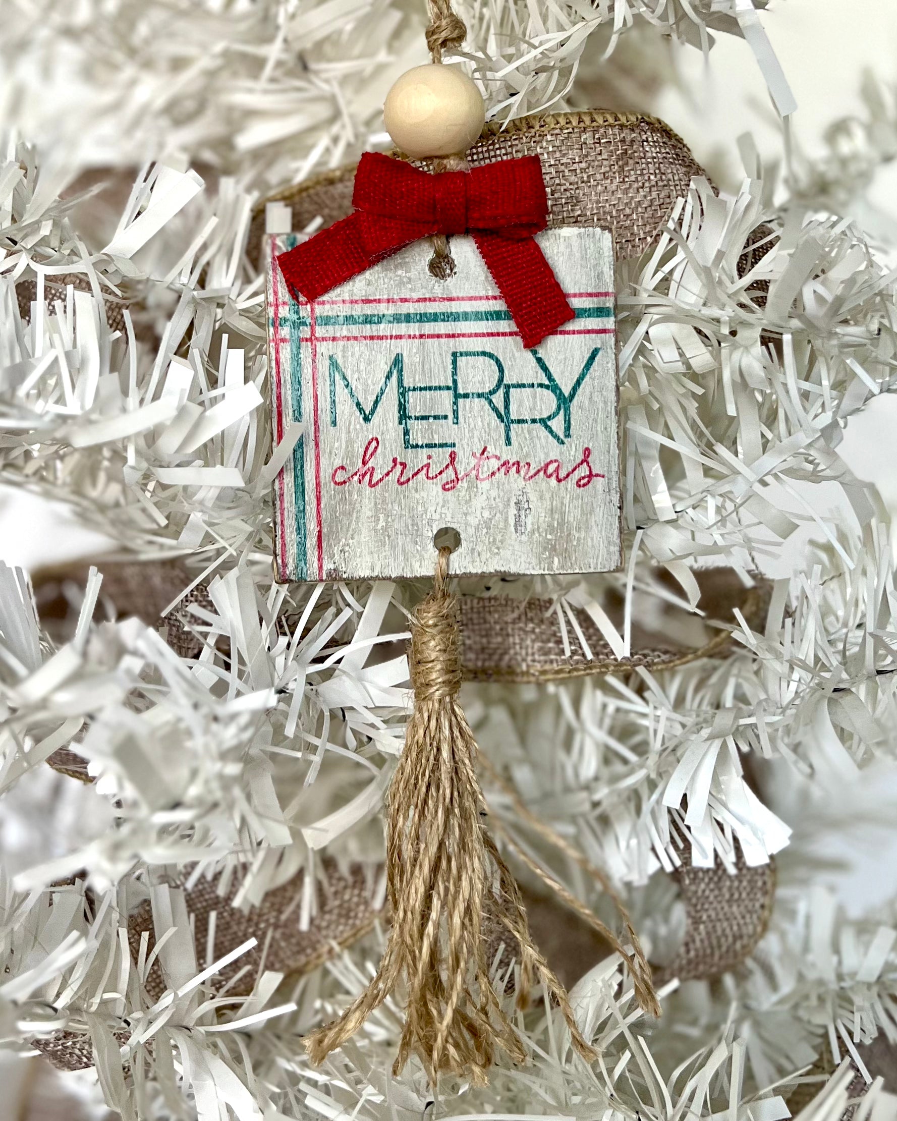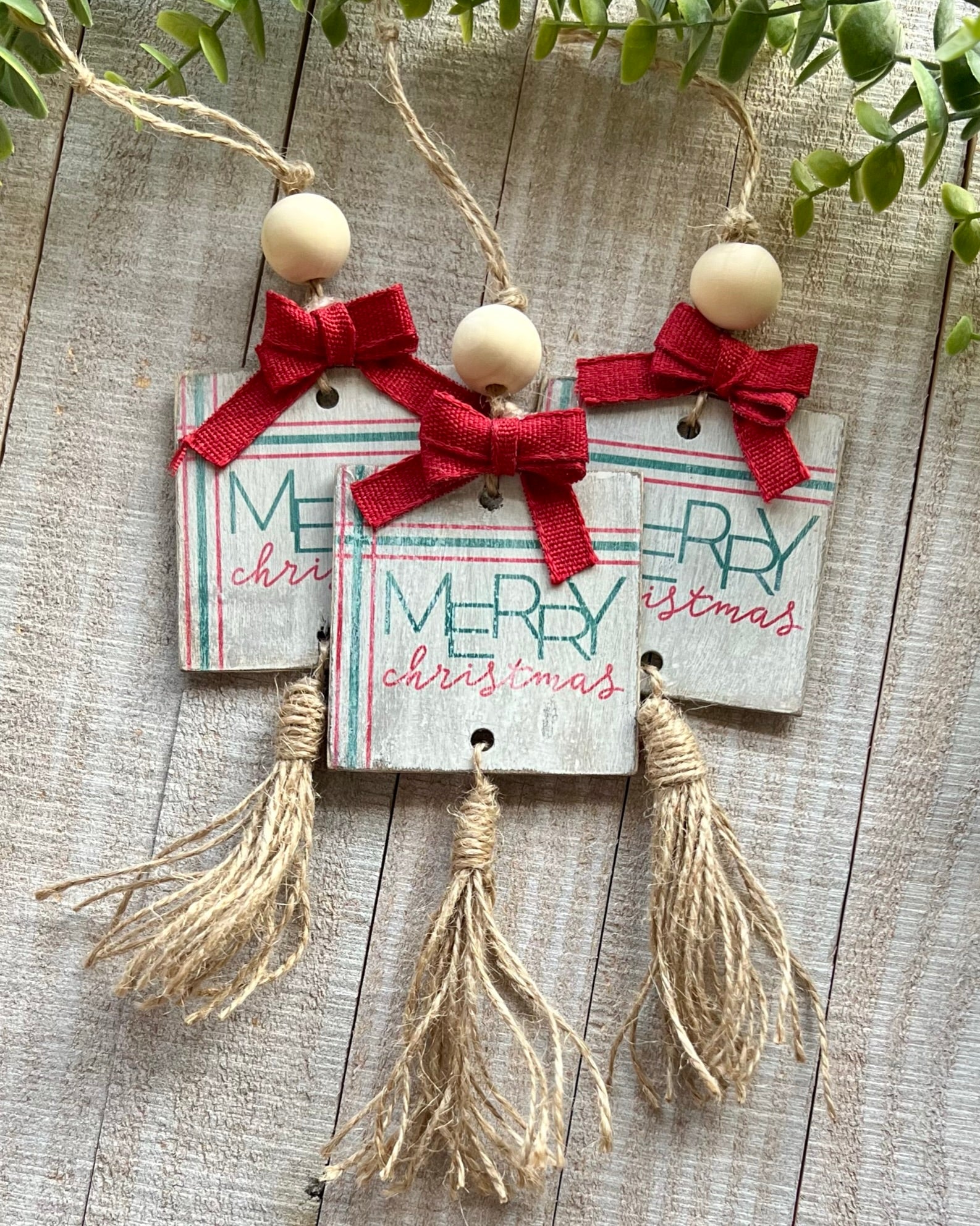 This adorable rustic-style Christmas Ornament with a fun tassel is the perfect addition to your Christmas tree.