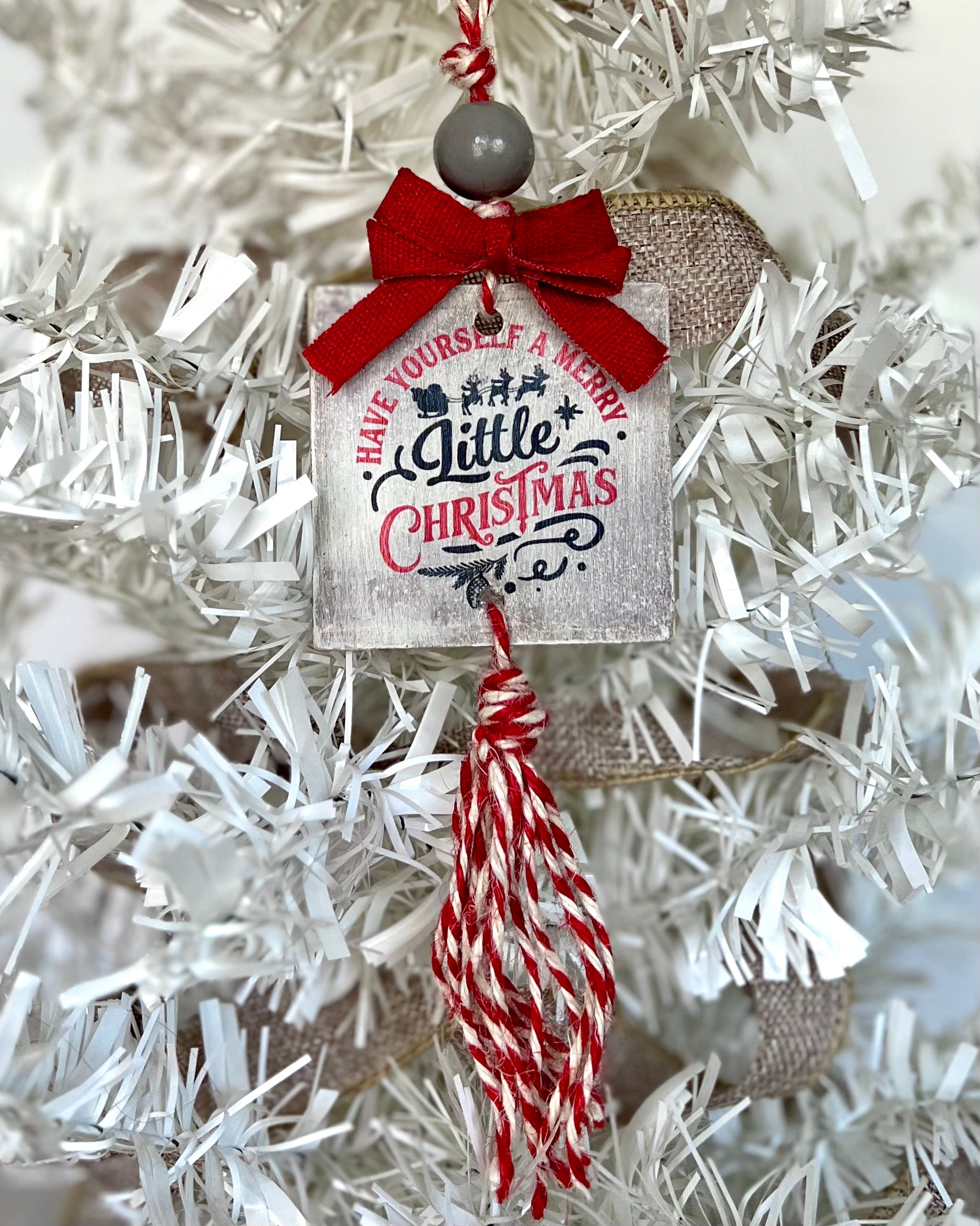 This adorable rustic-style Christmas Ornament with a fun tassel is the perfect addition to your Christmas tree.