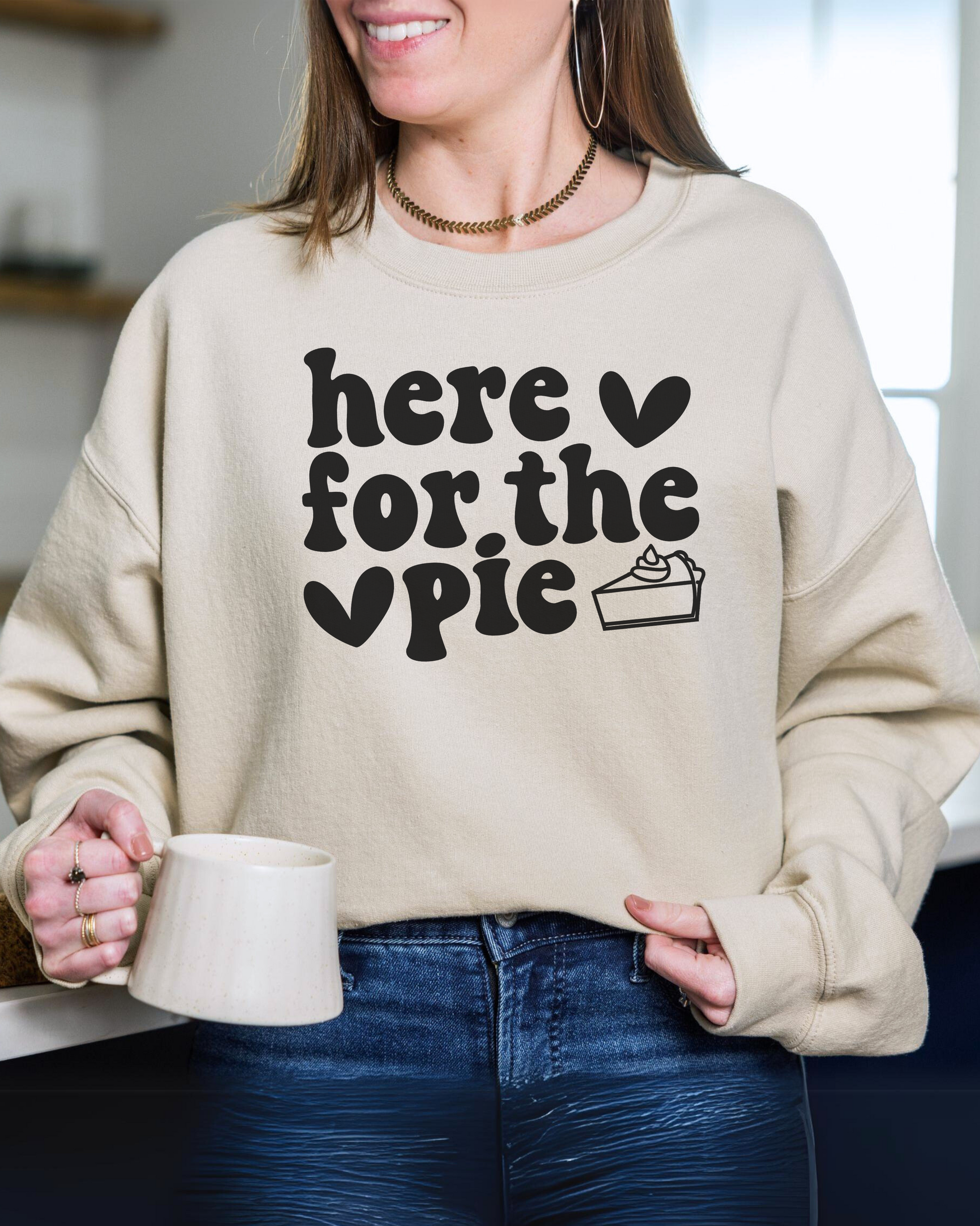 Oh, the sweet, sweet season of pie is here! Our "Here for the Pie" sweatshirt is all about that cozy, carefree fall vibe you’re craving. Whether you’re baking up something delicious, hitting the pumpkin patch, or just being your fabulous self (pie in hand or not), this sweatshirt’s got your back. Handmade with the comfiest fabric, it’s soft enough to snuggle up in and cute enough to give your look a little extra pop. You’re ready for all the fall feels—without sacrificing that put-together vibe you love. So, grab a slice, grab a sweatshirt, and let’s make this season the coziest one yet!