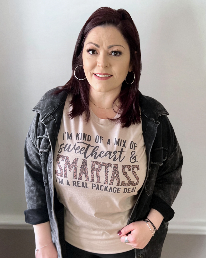 I'm kind of a mix of sweetheart & smartass I'm a real package deal | graphic top