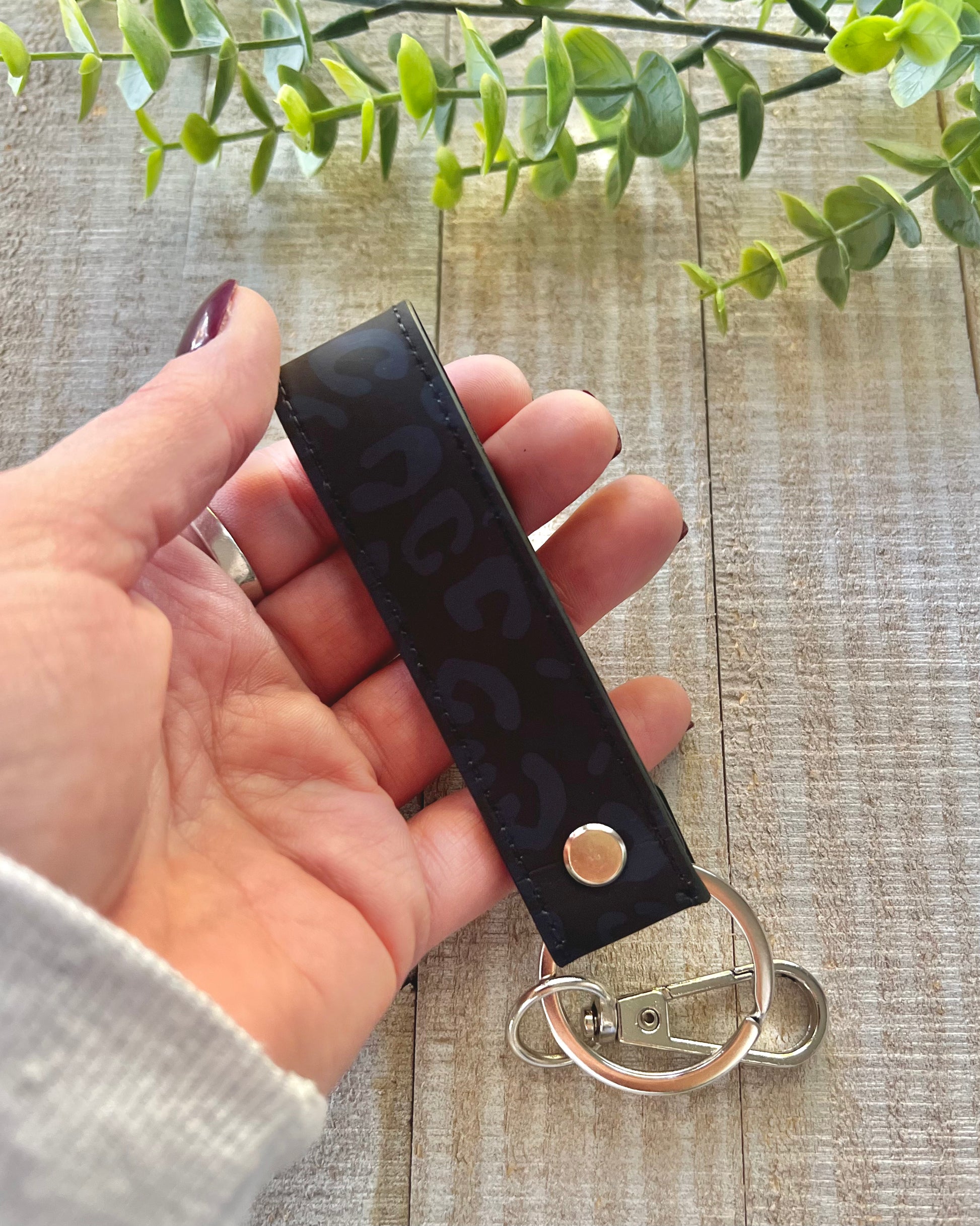 leopard print faux leather keychain