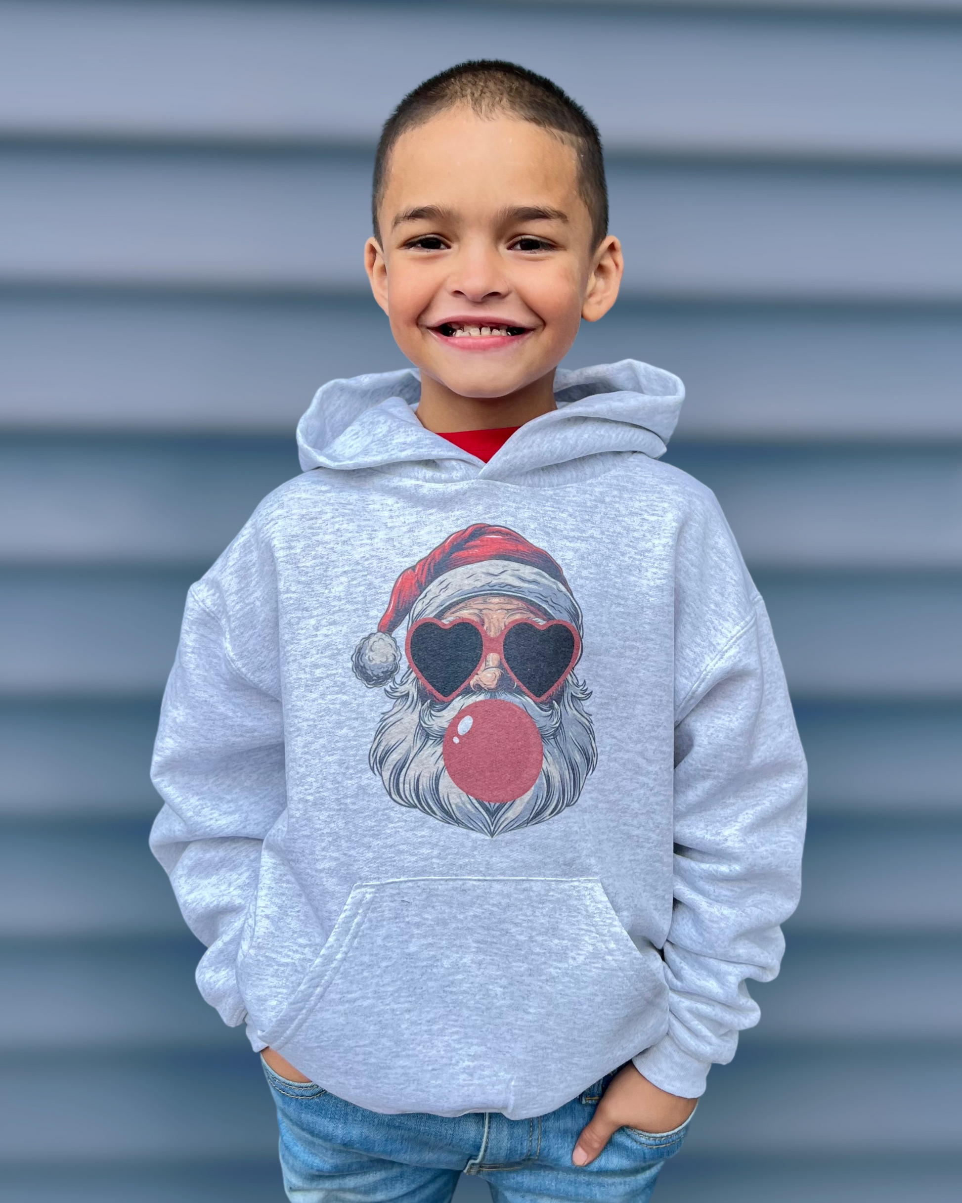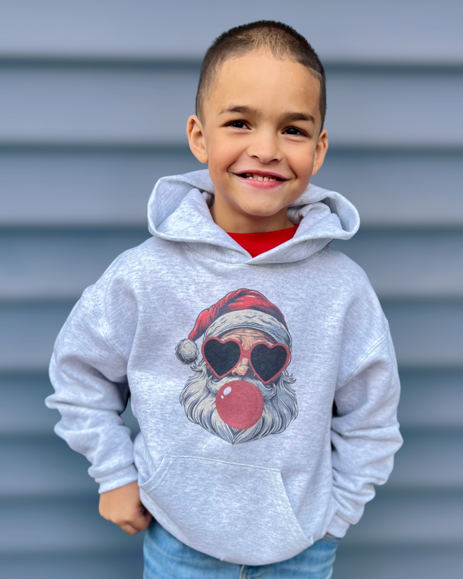 Hey there, Super Mom! Is your mini ready to steal the spotlight this holiday season? Our comfy, handmade kids sweatshirt featuring a cool Santa blowing a bubble while rocking heart-shaped sunglasses is here to make that happen! This isn’t just any sweatshirt; it’s the ultimate way for your kiddo to express their fun vibe and spread some holiday cheer!