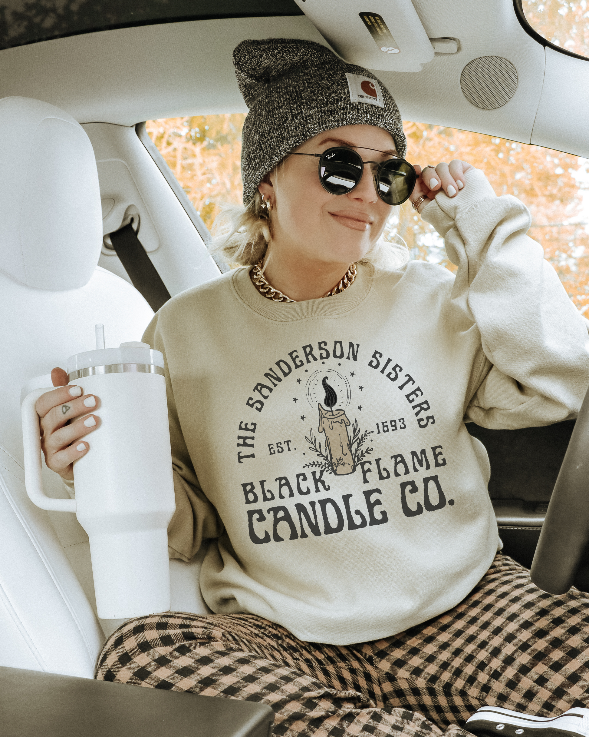 Bring a little witchy chaos to your everyday vibe with this Sanderson Sisters Black Flame Candle Co. sweatshirt. Comfy enough for coffee runs, school drop offs, and surviving whatever madness the day throws at you—while still looking like you actually tried. Soft, cozy, and just the right amount of spooky sass, it’s basically your fall uniform.