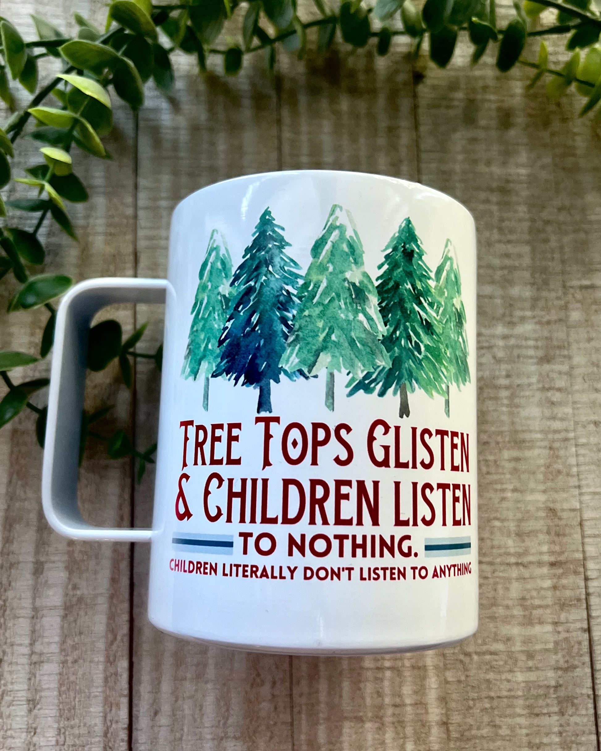 tree tops glisten & children listen to nothing | 12oz stainless steel mug