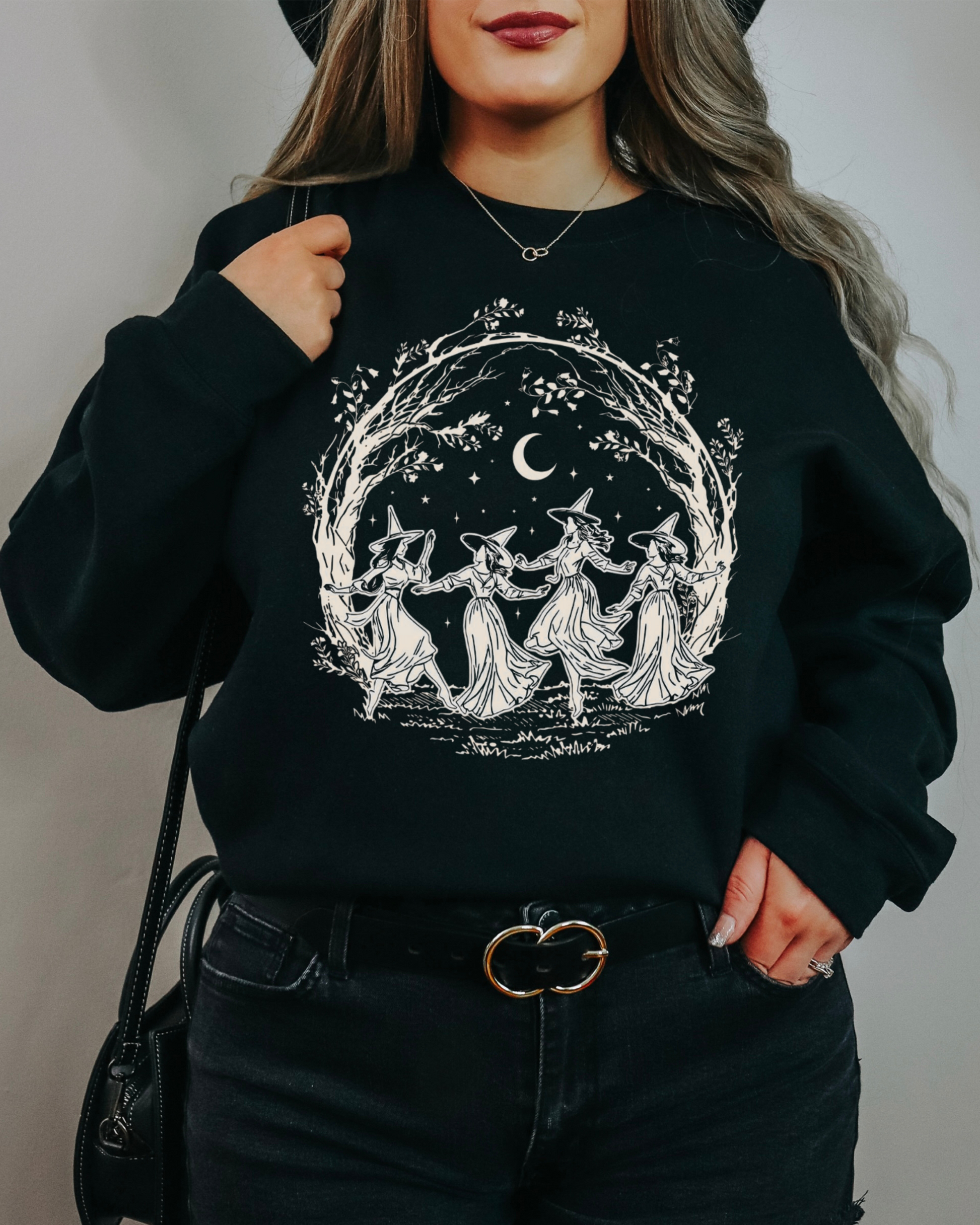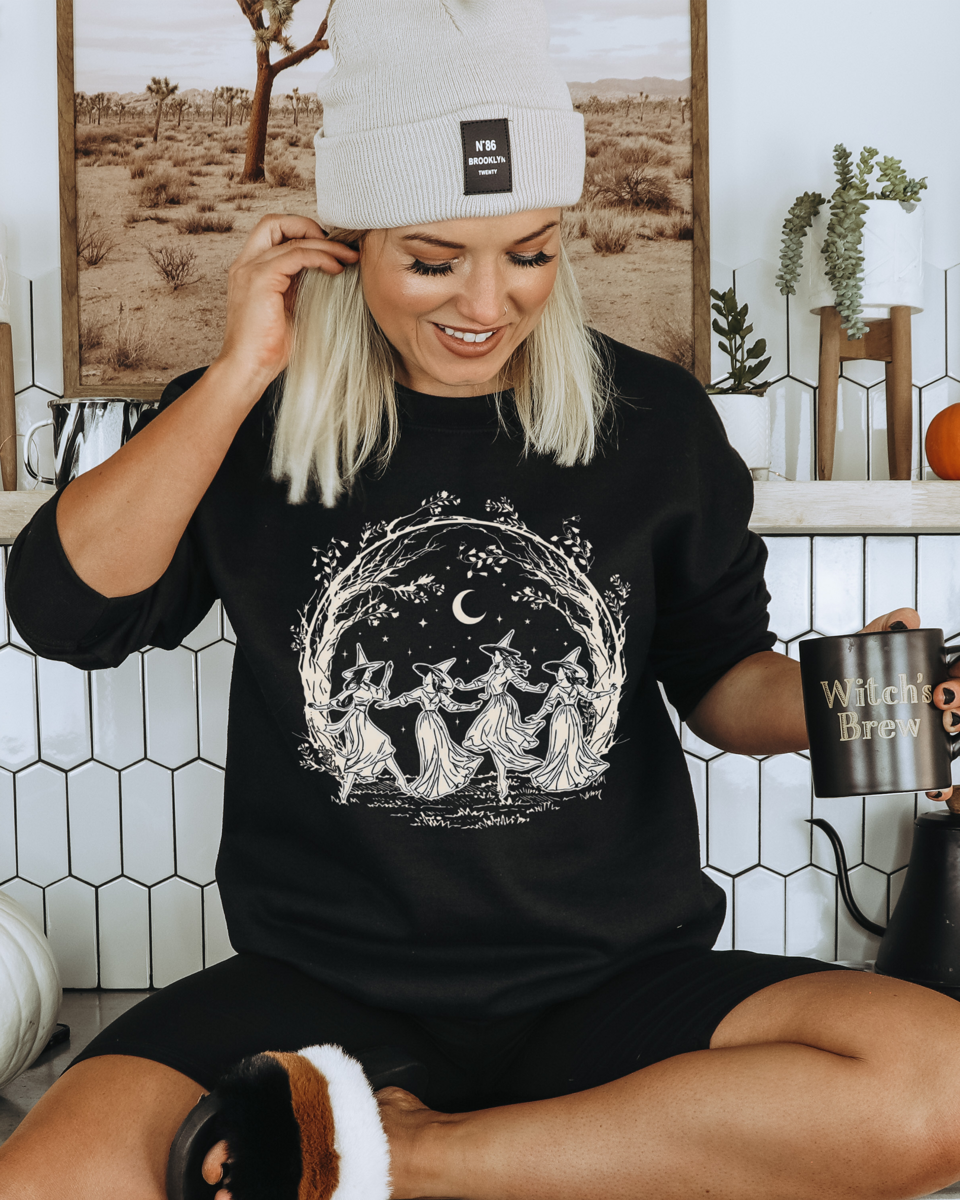 Comfy enough to lounge in, cute enough to wear out—this witchy graphic sweatshirt is your new fall BFF. Just add leggings, coffee, and a little chaos and you’re good to go.