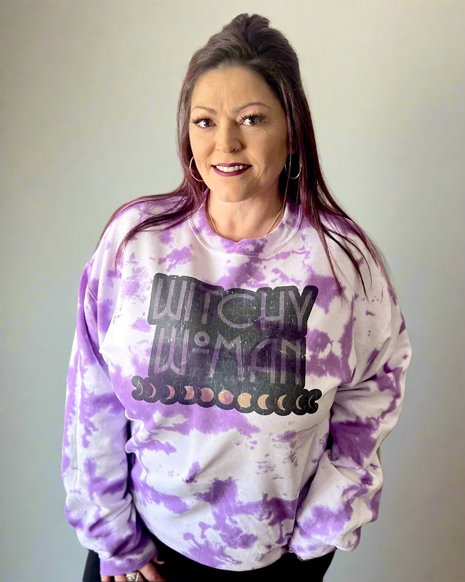 Now, let's get to the star of the show – the message. Emblazoned proudly on the front, "Witchy Woman" declares your affinity for all things enchanting. Whether you're casting spells, reading tarot cards, or just channeling your inner magical goddess, this sweatshirt is your perfect companion.